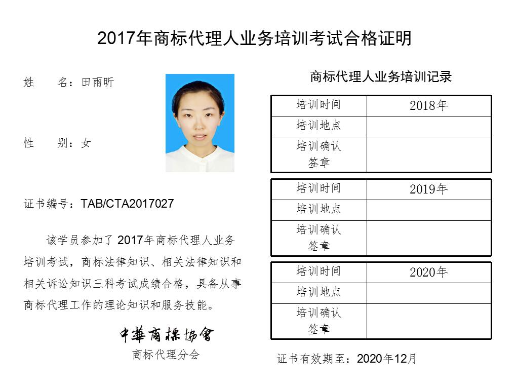 首页 > 代理分会 > 合格证书查询 > 2017年商标代理人业务培训考试合格证书 > 北京康信知识产权代理有限责任公司