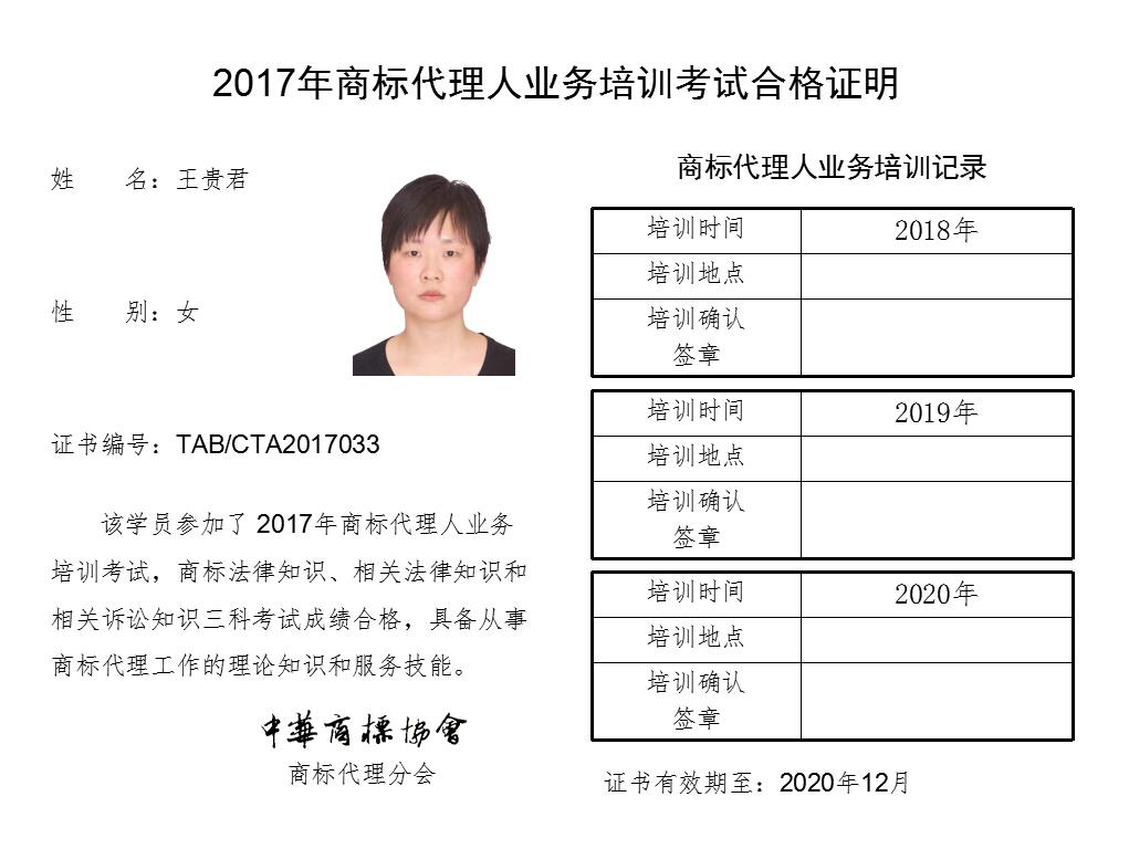 首页 > 代理分会 > 合格证书查询 > 2017年商标代理人业务培训考试合格证书 > 北京融飞律师事务所