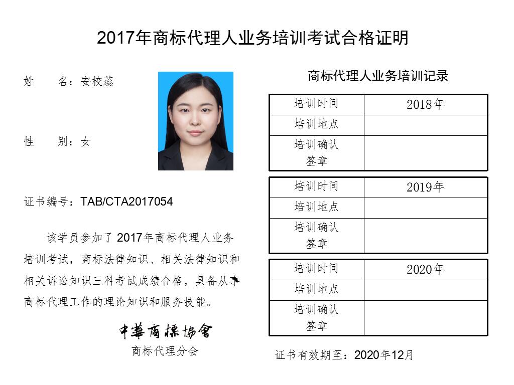 首页 > 代理分会 > 合格证书查询 > 2017年商标代理人业务培训考试合格证书 > 北京万商云集知识产权服务有限公司