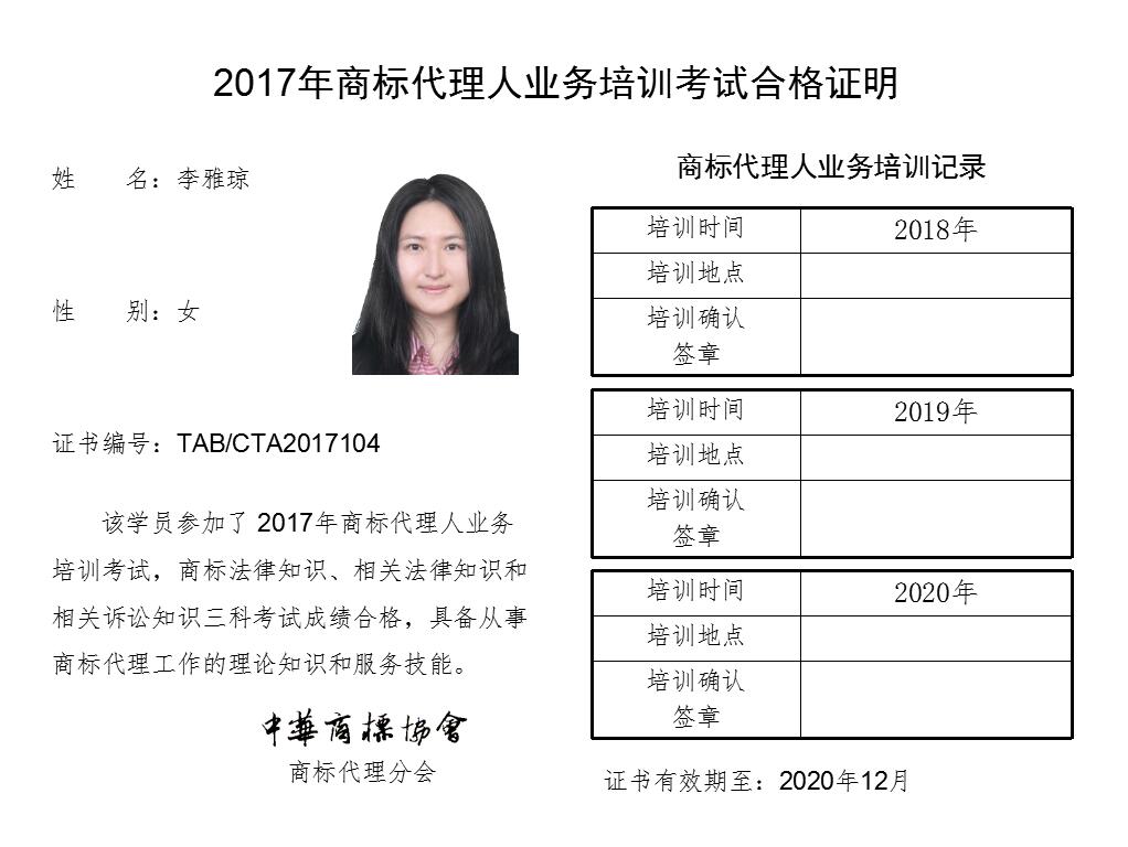 首页 > 代理分会 > 合格证书查询 > 2017年商标代理人业务培训考试合格证书 > 永新专利商标代理有限公司