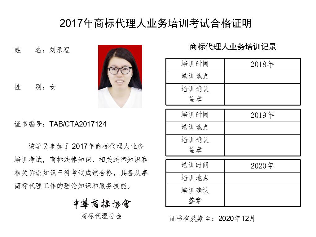 首页 > 代理分会 > 合格证书查询 > 2017年商标代理人业务培训考试合格证书 > 中国商标专利事务所有限公司