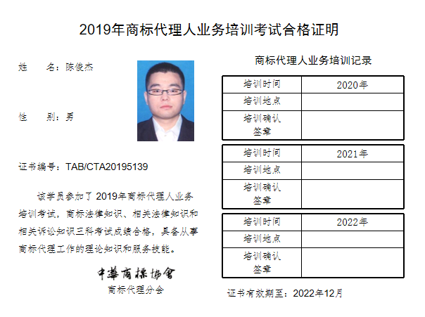 首页 > 代理分会 > 合格证书查询 > 2019年商标代理人业务培训考试合格证书 > 北京华冠知识产权代理有限公司