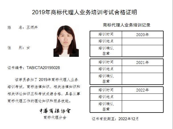 首页 > 代理分会 > 合格证书查询 > 2019年商标代理人业务培训考试合格证书 > 北京林达刘知识产权代理事务所(普通合伙)