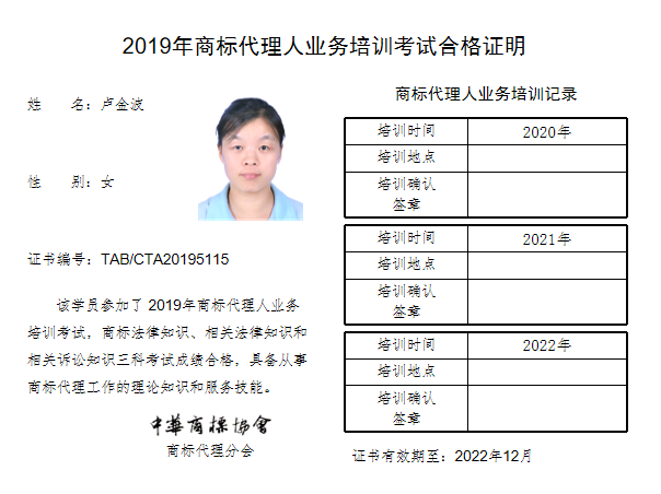 首页 > 代理分会 > 合格证书查询 > 2019年商标代理人业务培训考试合格证书 > 北京律盟知识产权代理有限责任公司
