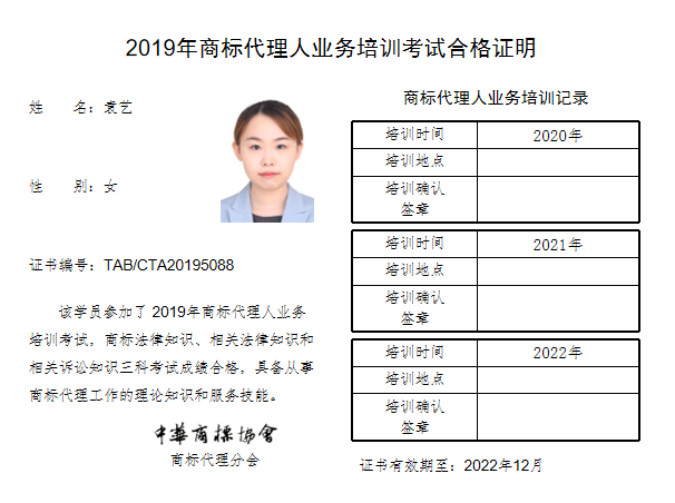 首页 > 代理分会 > 合格证书查询 > 2019年商标代理人业务培训考试合格证书 > 北京万慧达知识产权代理有限公司