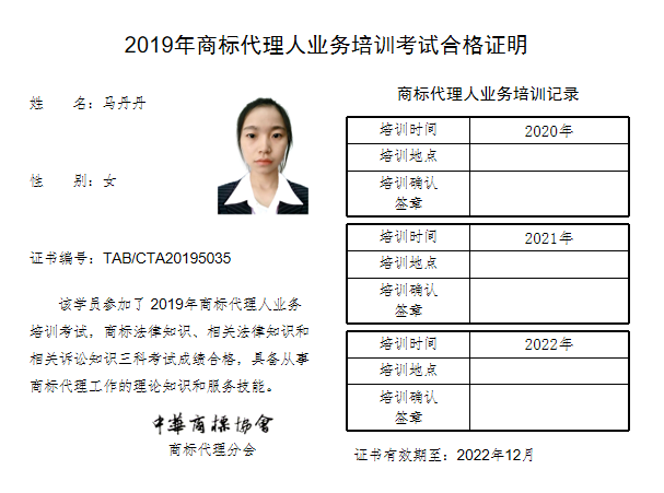 首页 > 代理分会 > 合格证书查询 > 2019年商标代理人业务培训考试合格证书 > 北京万慧达知识产权代理有限公司