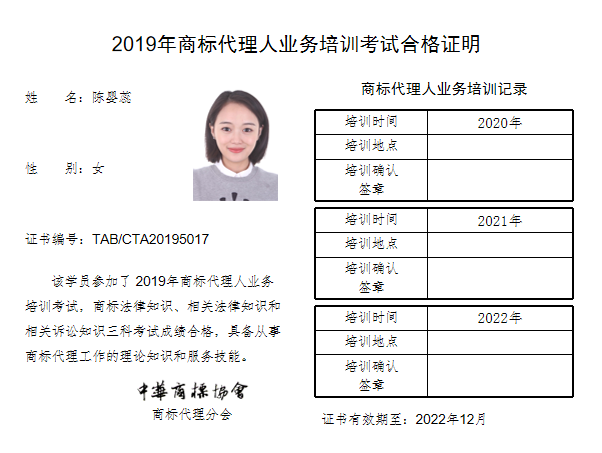 首页 > 代理分会 > 合格证书查询 > 2019年商标代理人业务培训考试合格证书 > 北京万慧达知识产权代理有限公司