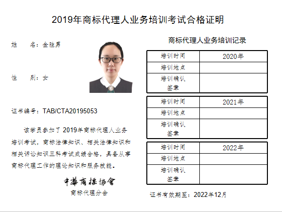 首页 > 代理分会 > 合格证书查询 > 2019年商标代理人业务培训考试合格证书 > 贝克麦坚时知识产权代理(北京)有限公司