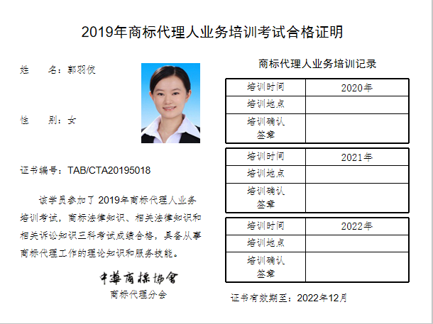 首页 > 代理分会 > 合格证书查询 > 2019年商标代理人业务培训考试合格证书 > 超凡知识产权服务股份有限公司
