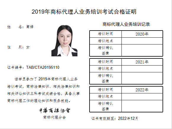 首页 > 代理分会 > 合格证书查询 > 2019年商标代理人业务培训考试合格证书 > 罗思(上海)咨询有限公司