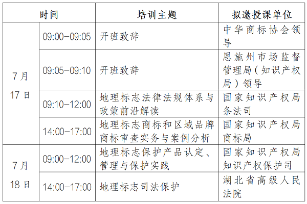 为进一步提升地理标志工作者的政策理解水平和实务操作能力,有效发挥地理标志在培育特色产业、打造区域品牌、促进农民增收中的核心引擎作用,7月17日至18日,中华商标协会与恩施土家族苗族自治州市场监督管理局(知识产权局)在湖北恩施将共同举办“地理标志赋能区域经济发展培训班”。培训相关安排如下: