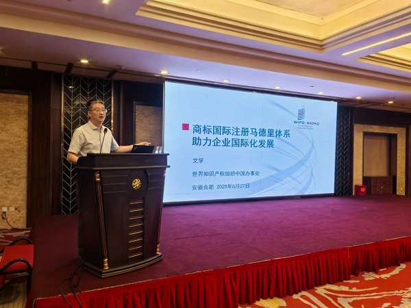 6月27日,由中华商标协会和世界知识产权组织(WIPO)中国办事处共同主办、安徽省商标协会承办的“马德里商标国际注册高级研修班”在合肥成功举办。协会副会长兼秘书长吴东平、安徽省知识产权事业发展中心主任吴建中出席研修班并致辞,世界知识产权组织中国办事处顾问文学、国家知识产权局商标局国际一处二级主任科员李妍、北京三友知识产权代理有限公司商标二部部长何薇分别就相关议题进行授课。