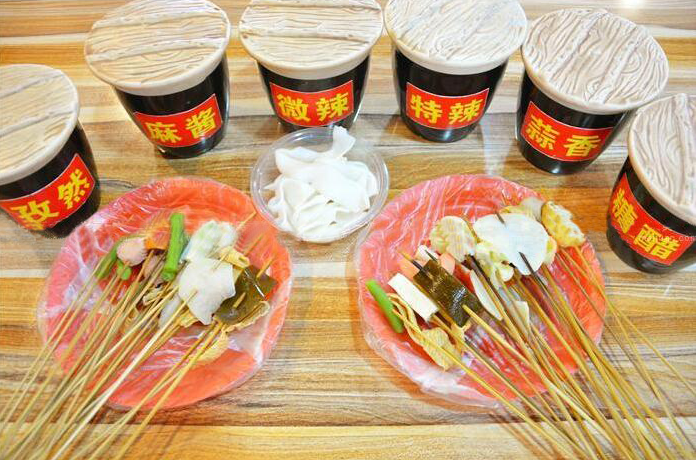 万物皆可蘸的义井沾串是小吃街最红的招牌。沾串类似“串串香”,但它是提前加工做熟,顾客来了拿起就吃。各种串串在秘制蘸料中一蘸,几十上百串不在话下,站着吃的姿势也成为太原街头一景。