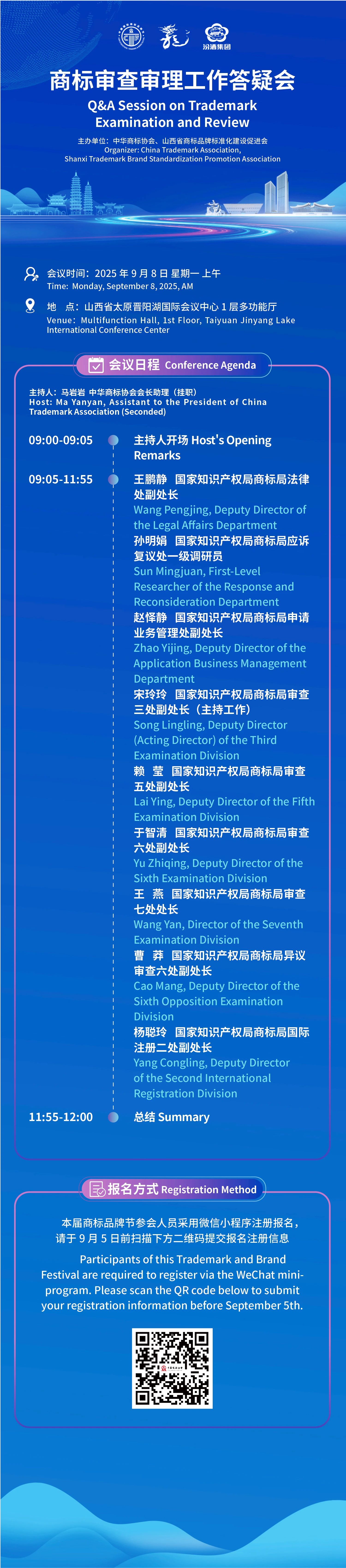 中华商标协会定于2025年9月5—8日在山西省太原市举办第十五届中国国际商标品牌节。