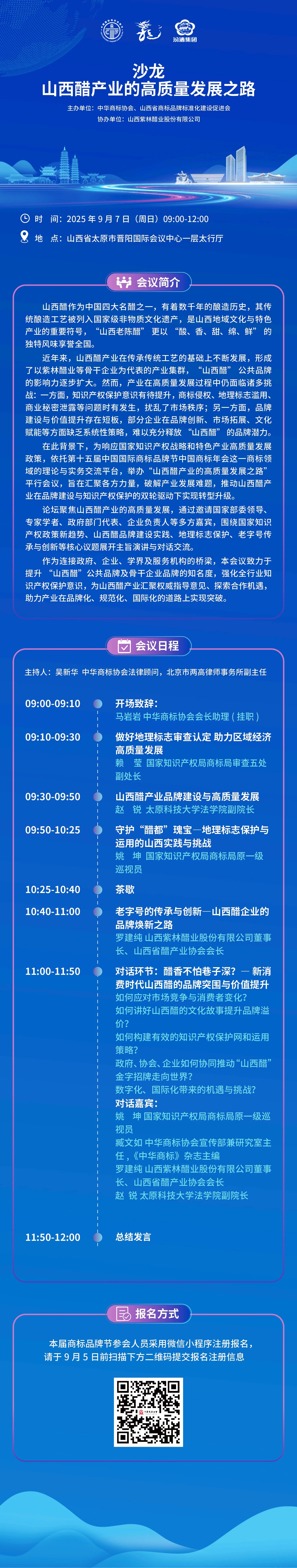 中华商标协会定于2025年9月5—8日在山西省太原市举办第十五届中国国际商标品牌节。