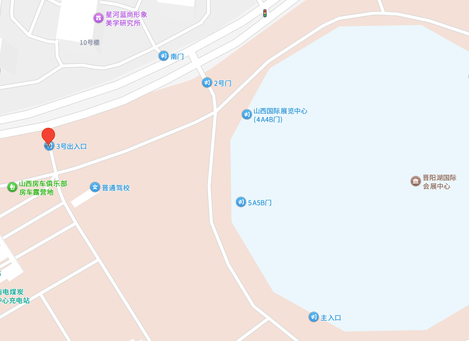 手机导航将终点设置为“晋阳湖国际会展中心(3号出入口)”,根据导航驾驶前往。到达后车辆可以停在晋阳湖国际会展中心3号停车场。