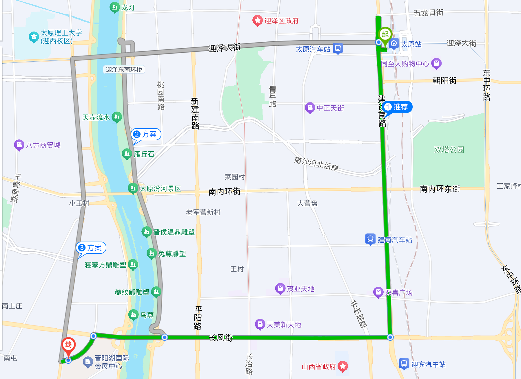 手机导航将终点设置为“晋阳湖国际会展中心(3号出入口)”,根据导航驾驶前往。到达后车辆可以停在晋阳湖国际会展中心3号停车场。
