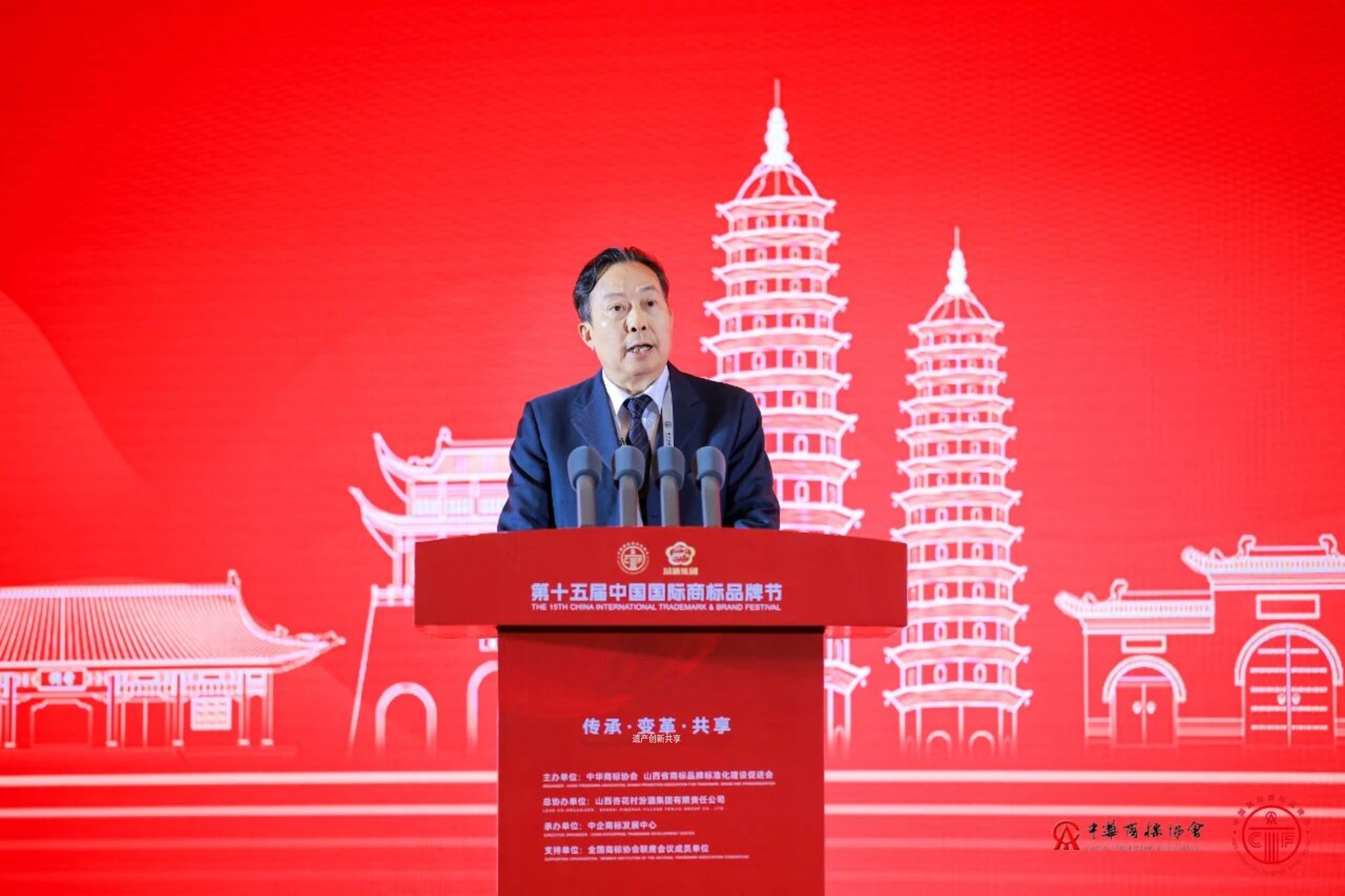 中华商标协会会长马夫代表主办方向中外商标品牌界嘉宾致以诚挚的欢迎。他表示,本届中国国际商标品牌节得到了国家知识产权局、国家市场监督管理总局、最高人民法院、山西省人民政府、太原市人民政府、山西省市场监督管理局(知识产权局)、太原市市场监督管理局(知识产权局)以及全国各省、自治区、直辖市市场监督管理局、知识产权局的大力支持,对大家以及所有对本届商标品牌节给予指导、支持和帮助的单位和个人表示诚挚的谢意;同时,也对本届商标品牌节的共同主办方山西省商标品牌标准化建设促进会和总协办单位山西杏花村汾酒集团有限责任公司的支持和贡献表示感谢。