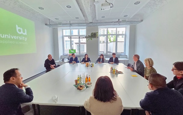 9月22日,中华商标协会(CTA)会长马夫率代表团访问德国品牌应用科学大学(Brand University of Applied Sciences, Hamburg),与校长单凡及校方学术代表举行会谈。双方围绕商标与品牌领域的人才培养、学术研究及行业实践等议题展开深入交流,探索未来可持续合作路径。
