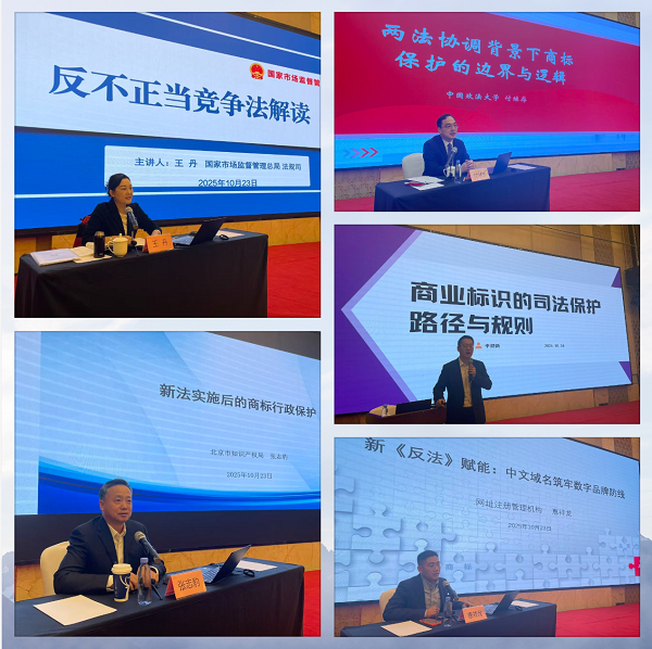 本次培训课程紧扣10月15日施行的新修订《反不正当竞争法》,邀请国家市场监督管理总局法规司副司长王丹、北京市知识产权局知识产权保护处一级调研员张志豹、北京知识产权法院三级高级法官李迎新和中国政法大学知识产权法研究所所长付继存四位专家分别从法律制定、行政与司法保护、法律研究探讨等角度进行相关授课。内容聚焦新法修改核心要点,特别是商标保护有关条款,通过典型案例的解读,帮助学员理清反不正当竞争法与商标法的关系,正确理解两部法律的立法逻辑和保护边界,促进法律的适用。“.网址”注册管理机构总经理惠祥龙同步分享“商标+中文网址”协同保护策略,结合数字品牌保护的典型案例,提示企业需重视中文网址“在先权利”,防范数字品牌混淆风险。