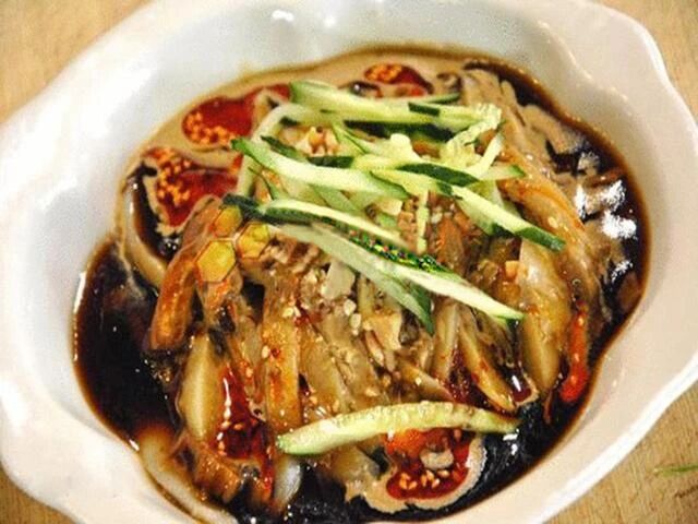 坚守食品街30多年的杨记灌肠,是太原小吃的金字招牌。每日清晨4点,师傅们就开始手工和面,用荞麦面制成灌肠,坚持零添加白面,口感略苦却十分地道。一碗荞面灌肠、一勺酱卤汁、一撇油辣子,酱卤汁负责画龙点睛,锁住太原人的“乡愁”。