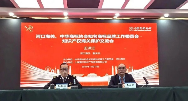 2025年12月10日,品工委与昆明海关隶属河口海关在云南省红河哈尼族彝族自治州河口瑶族自治县共同主办“知名商标品牌知识产权海关保护交流会”,品工委执行副主任王向明、河口海关副关长王洪江出席并致辞,河口海关办案部门主要负责人、业务骨干及现场监管部门关员、部分知名商标品牌权利人代表等30余人参会。