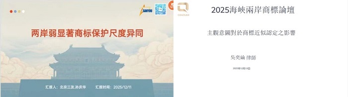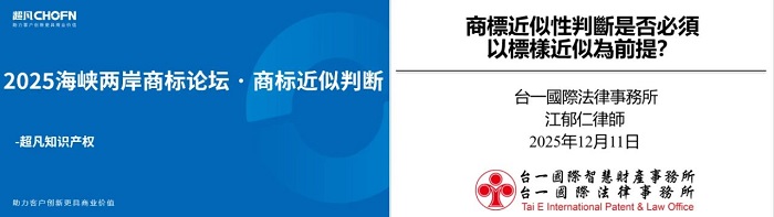 超凡知识产权代理有限公司涉外商标事业部总经理冯浩雨、台一国际法律事务所副所长江郁仁分别就《商标近似判断》和《商标近似性判断是否必须以标样近似为前提?》进行分享。