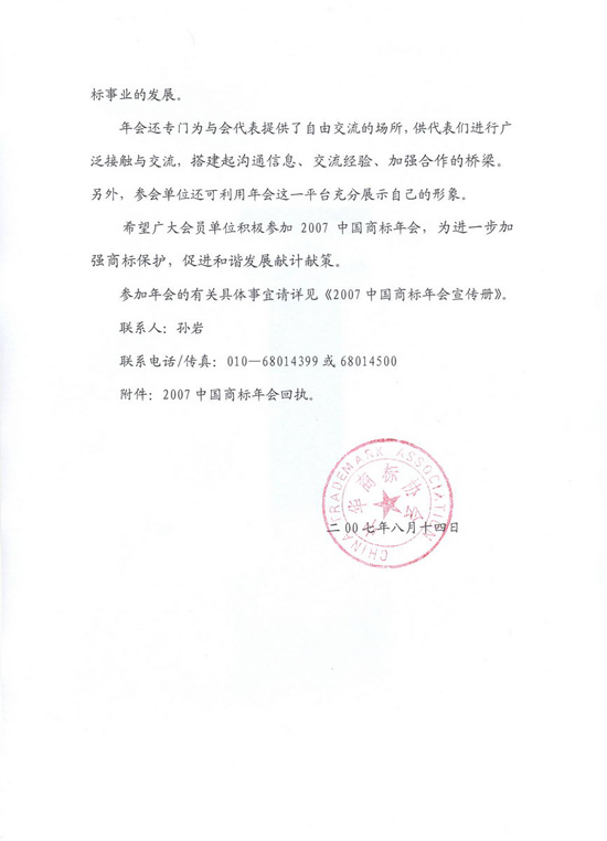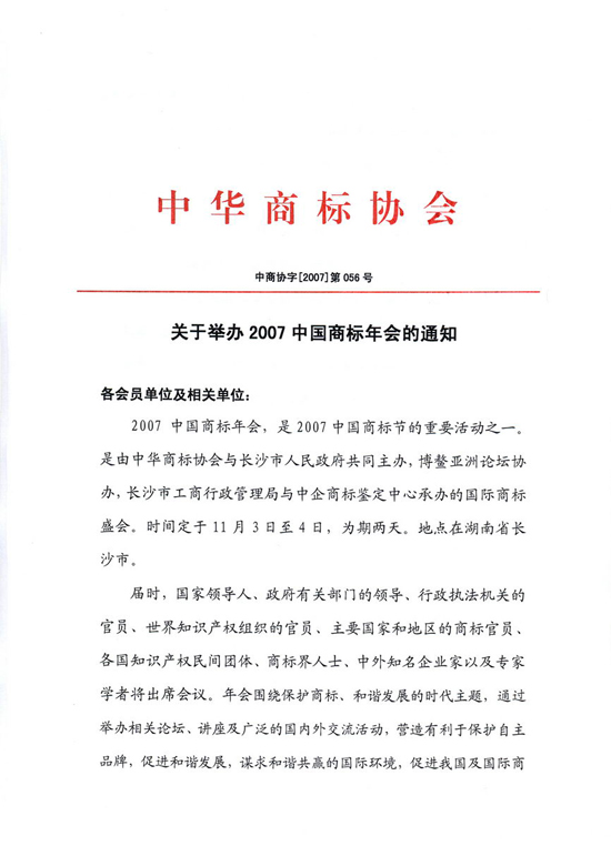 关于举办2007中国商标年会的通知