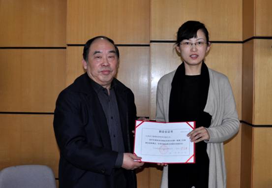商标代理分会会长、中国商标专利事务所有限公司李彦章董事长(左)向新当选的副会长单位江苏省宁海商标事务所有限公司曹静总经理颁发副会长证书。