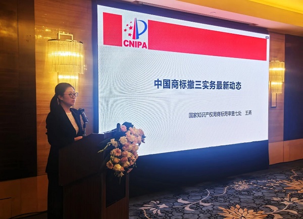 中国国家知识产权局商标局审查七处处长王燕就《中国商标撤三实务最新动态》进行发言