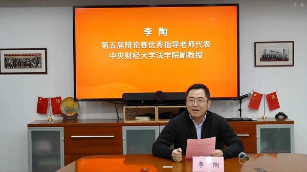 李陶作为第五届辩论赛优秀指导老师代表发言。他表示,中央财经大学已参加过五届辩论赛,而他本人也担任了近四届赛事的指导老师,在与学生并肩拼搏的努力下,学院团队成绩逐年稳步提升,直至上届夺冠。他代表广大参赛师生向辩论赛的组织单位和评委老师们的辛勤付出表达了由衷的感谢。展望未来,他期待这一优质的辩论赛事,能在知识产权人才培养、教学实践、知识宣传与理论研究等多个维度发挥更大作用,彰显知识产权独有的法律魅力。