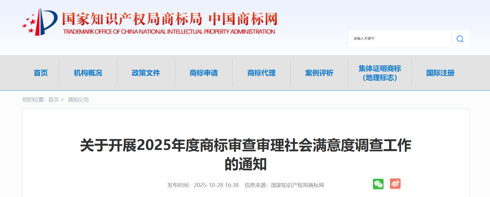 关于开展2025年度商标审查审理社会满意度调查工作的通知