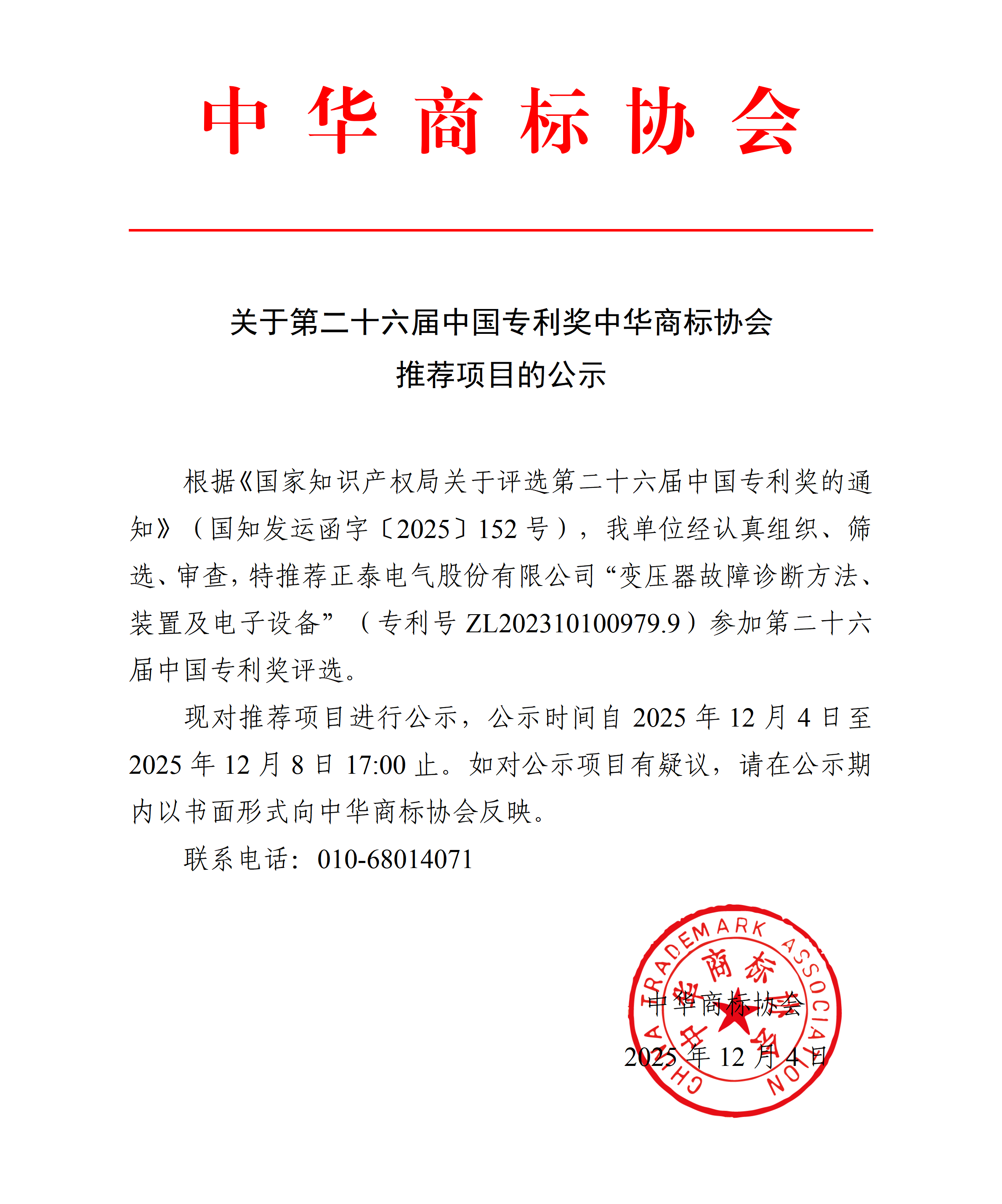 关于第二十六届中国专利奖中华商标协会推荐项目的公示