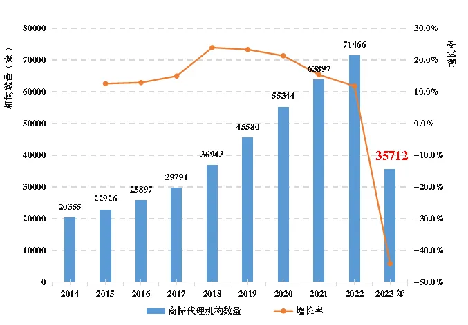 图2 2014-2023年备案商标代理机构数量变化情况